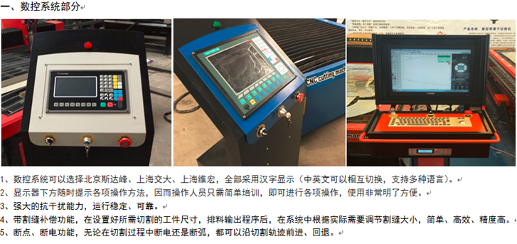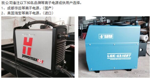 機器橫梁采用臺灣進口雙軸心導(dǎo)軌,并配有防塵罩保護。等離子調(diào)高體為鋁合金結(jié)構(gòu),減少橫梁負載,調(diào)高軸為高碳鋼棒,硬度高耐磨。等離子配套接口裝有等離子防撞裝置,對等離子割槍提供安全保護。同時配有等離子切割噴水裝置,在切割時能實時對切割點噴水,起到提高切割效果,減小熱變形的作用。